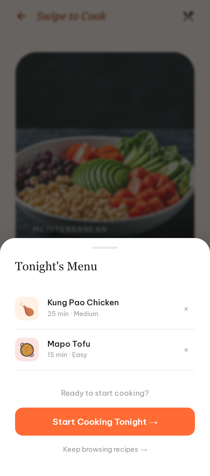 A beautiful modal showcases top-tier recipes tailored precisely to your available ingredients.