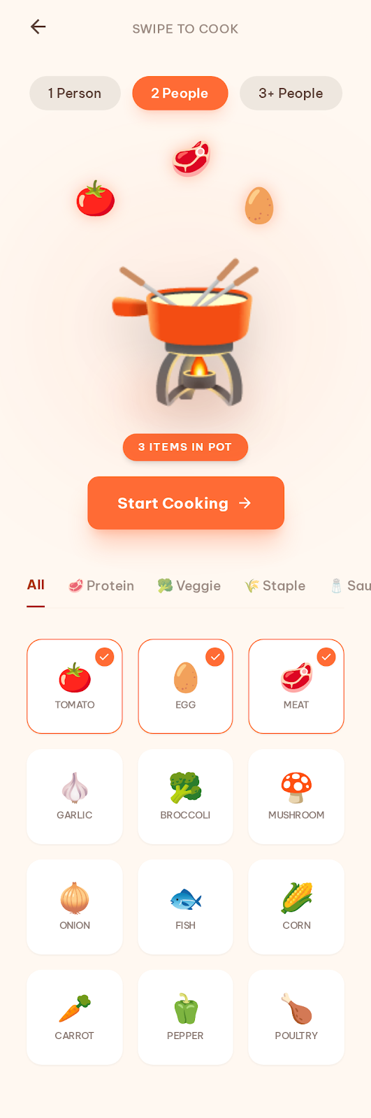 Got random vegetables and a piece of chicken? Simply select them in a playful, natural interface.